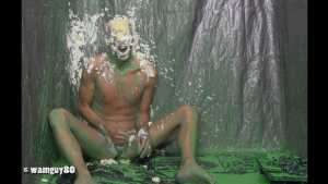 | This video is of me getting green slimed wearing a sleeveless blue shirt and jock strap. There are three camera angle included. Starring: | ||||